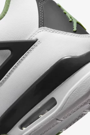 The Air Jordan 4 Seafoam (W) received the same color-blocking treatment as the Jordan 4 Fire Red, and Jordan 4 Military Blue. The Seafoam Air Jordan 4 features a smooth white leather upper, with a black midsole and heel tab. Seafoam green eyelets, mudguard, sock lining, and tongue and heel logos, add a layer of contrast to the sneaker.