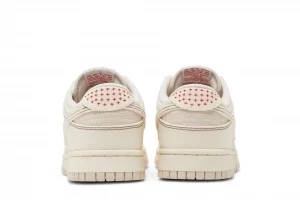 The Nike Dunk Low Orewood Brown Sashiko is constructed with a Pale Ivory denim upper that features Orewood Brown contrast stitching throughout. Nike used red Sashiko style stitching across the toe box, heel tab and eyelets. Red Nike branding is placed subtly on the tongue and insoles.