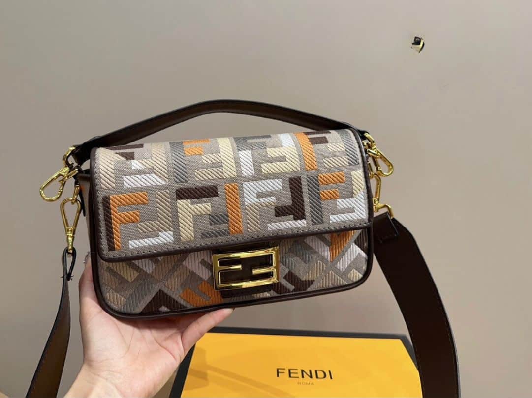 Fendi Baguette Multicolor Canvas Bag With Ff Embroidery 25Cm 8Br600Anh4F1Mql
