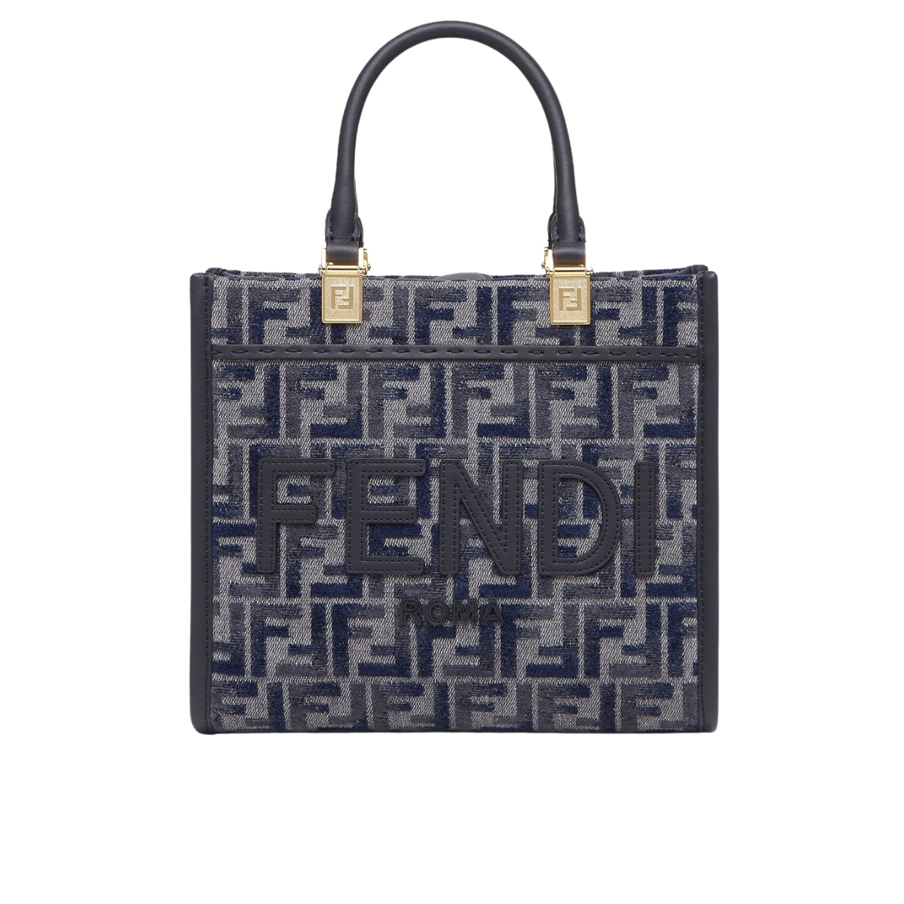 Fendi Sunshine Small Ff Chenille Shopper Dark Blue 26Cm 8Bh394Asu0F1Pqk