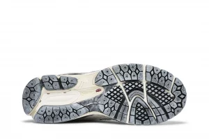 The New Balance 2002R Protection Pack Rain Cloud features a grey mesh upper with tonal jagged suede overlays and a reflective New Balance logo. From there, a cream Nrgy midsole and grey outsole complete the design.